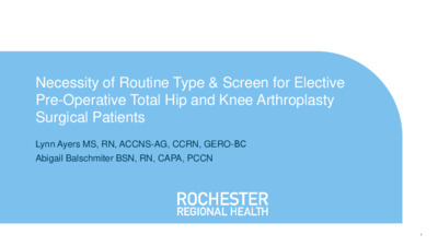 In this post pandemic period, nurses are focused on improving patient care and streamlining their delivery of care processes to prevent redundancies and optimize the use of limited resources to meet daily patient care goals. They increasingly rely on evidence based practices to inform their care decisions. In surgical services, nurses found that there is insufficient evidence to support the routine performance of pre-operative type and screen (T&S) testing for patients undergoing Total Hip Arthroplasty (THA) or Total Knee Arthroplasty (TKA). Consequently, we proposed conducting a retrospective chart review on all elective THA and TKA cases from January 1, 2024 through December 31, 2024.